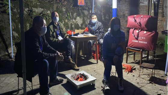 (圖為劉敏同志與防疫志愿者在中鐵五局電務(wù)處家屬院值勤)